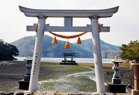 물 위에 떠 있는 도리이(신사 입구 문)가 매우 인상적이며, 대마도 여행 인생샷 명소로 유명합니다.